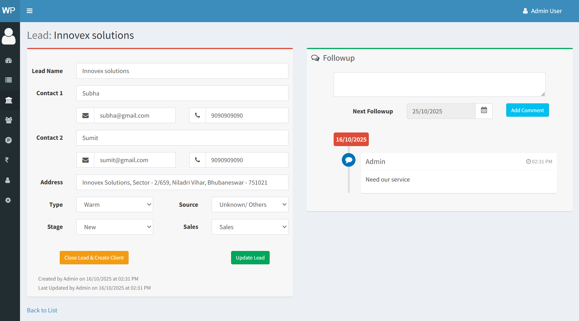 Whether you’re managing a small startup or a growing enterprise, this system gives you full control over every stage of your business process — from the initial lead to the final payment collection.